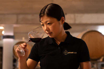 ベルンハルト・コッホはドイツ、ファルツのハインフェルト(Hainfeld)村に拠点を置く全体で50haの畑を所有するワイングート(醸造所)です。現在、坂田千枝さんは、ここの醸造責任者を務めています。彼女は2003年、高校卒業後ドイツに渡り、現地の職業訓練校で学びながらドイツ国内の様々なワイナリーで働き、またオーストリア、南アフリカのワイナリーで研修し、経験を積んだそうです。その後、国立ヴァインスベルク栽培醸造学校に進み、2012年に栽培醸造技術師の国家資格を取得。2013年10月より現在まで醸造責任者として活躍しています。女性らしい丁寧な造り。